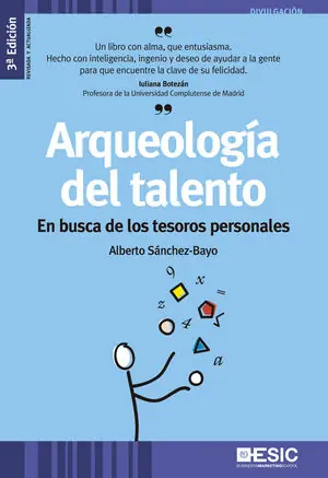 ?Arqueología del Talento? revela al lector la naturaleza del talento y los rasgos que le diferencian del resto de capacidades del ser humano. Y lo hace no sólo para satisfacer la mera curiosidad intelectual de conocimiento sino para animarnos a ir al encuentro de ese preciado atributo que llamamos talento o don, proponiendo un método para su descubrimiento.Identificar el talento se muestra esencial para afrontar con motivación y éxito nuestra carrera profesional y la aventura de vivir. Tomar conciencia de esta extraordinaria habilidad innata forma parte del viaje de conocimiento personal que nos aporta claridad sobre nuestro propósito esencial, valor y utilidad. Como nos recuerda el autor, lo importante no es comprender el mundo sino hallar nuestro lugar en él para poder construir la propia obra al servicio de los demás, tal como vienen haciendo los genios de la humanidad a lo largo de los tiempos. Y para andar este camino, el libro ofrece un conjunto de herramientas como la creatividad, los sueños, la hipnosis o el coaching y, pautas de aprendizaje que han seguido, a lo largo de la historia, los grandes personajes para salvar obstáculos y alcanzar las metas que se propusieron. Escrito en forma de ensayo divulgativo, el libro está dirigido a todas aquellas personas que por motivos personales o profesionales buscan el lugar en el que construir con sentido su propia vida adecuando sus expectativas a sus capacidades personales. A todos aquellos que buscan su valor esencial, su espacio de competencia y excelencia en el desempeño de su labor.Autor: Alberto Sánchez-Bayo Sánchez es Licenciado en Ciencias Económicas y coach. Tras más de 15 años como consultor internacional en desarrollo territorial, actualmente dirige Co-labora Consulting Estratégico SLL una empresa dedicada a identificar, orientar y desarrollar el talento y el potencial que poseen las personas. Índice:Un templo perdido.- Desplegando el mapa.- Poniendo rumbo bajo las estrellas.- El brillo del talento.- Tasando mi tesoro.- La aventura de vivir con talento.- El talento, pozo de la fortuna.- Arqueología del talento herramienta innovadora en la identificación del talento.- Desarrollos y aplicaciones de arqueología del talento. Inscripciones en el templo del talento. «,
