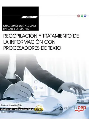 Recopilación y tratamiento de la información con procesadores de texto (UF0327) es una de las Unidades Formativas transversales presentes en distintos Certificados de Profesionalidad.Para el desarrollo de los contenidos de este cuaderno se han tenido en cuenta los parámetros establecidos en el Real Decreto 34/2008, de 18 de enero, por el que se regulan los certificados de profesionalidad. Se incluyen los siguientes recursos:? Ficha técnica? Guía metodológica? Ejercicios de autocomprobación por tema? Ejercicios prácticos? Ejercicios de evaluación final «,