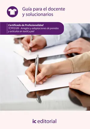 Objetivos La presente guía está destinada a ofrecer al cuerpo docente responsable de la enseñanza del programa de Cualificaciones Profesionales y Certificados de Profesionalidad, una guía metodológica para obtener el máximo rendimiento de los contenidos formativos desarrollados, y para mejorar las habilidades comunicativas y la aplicación de una metodología lo más efectiva y práctica posible. Además ofrece los Solucionarios de los ejercicios de autoevaluación de cada uno de los manuales que componen el presente certificado, para que el docente pueda ayudarse de ellos para resolverlos y evaluarlos. Contenidos BLOQUE 1. GUÍA PARA EL DOCENTE: TÉCNICAS DE ENSEÑANZA Y APRENDIZAJE Introducción El programa de formación Factores determinantes de la efectividad de la comunicación en el proceso de enseñanza-aprendizaje La comunicación verbal y no verbal en el proceso instructivo Técnicas de secuenciación de contenidos La selección y planificación de estrategias didácticas La selección y planificación de medios y recursos didácticos La planificación de la evaluación del proceso de enseñanza-aprendizaje El seguimiento formativo Instrumentos para el seguimiento Metodología de la evaluación del diseño de formación BLOQUE 2. SOLUCIONARIOS DE EJERCICIOS DE REPASO Y AUTOEVALUACIÓN Solucionario 1. Información y atención al cliente en servicios de arreglos y adaptaciones de artículos en textil y piel Solucionario 2. Materiales, herramientas, máquinas y equipos de confección Solucionario 3. Técnicas básicas de corte, ensamblaje y acabado de productos textiles Solucionario 4. Operaciones de reparación de prendas de vestir y ropa de hogar Solucionario 5. Adaptaciones en prendas de vestir Solucionario 6. Personalizaciones en prendas de vestir «,
